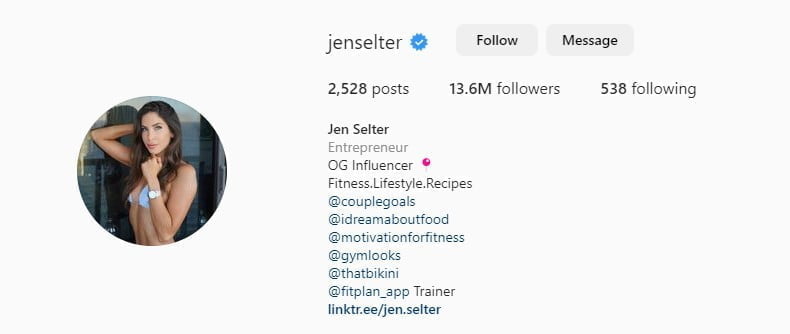 Based in New York, Jen inspires her followers with nutrition, fitness, and lifestyle posts on a daily basis. This influencer began her fitness journey in high school when she worked at a local gym. From there, she quickly gained millions of followers when her booty-based workouts started going viral. She has also collaborated with several health and beauty brands such as The Perfect Sculpt and Rebels Refinery.